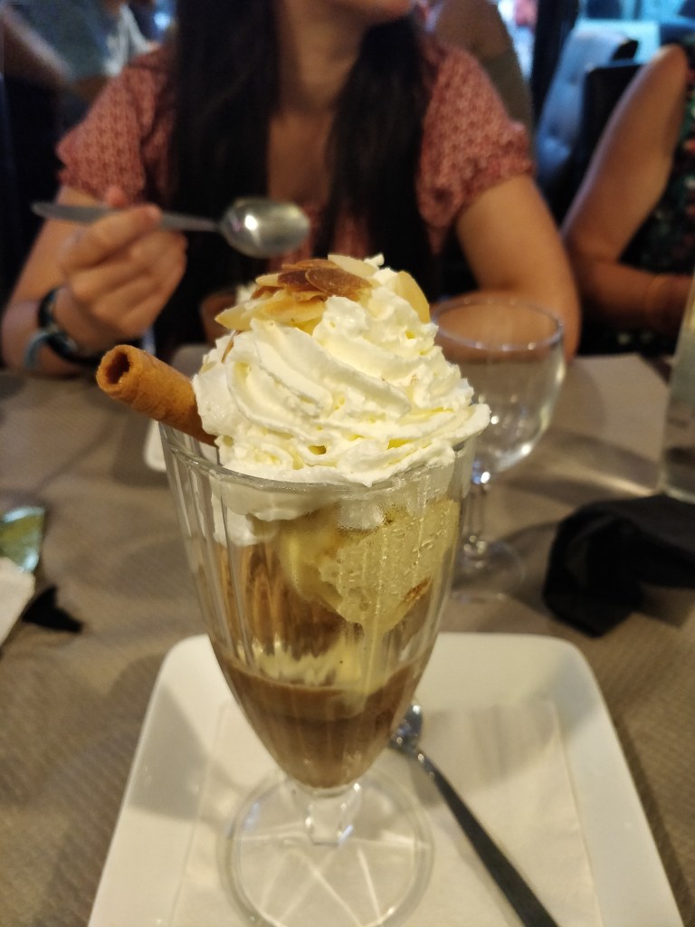 On a très bien mangé, malgré ma petite déception quand ils nous ont annoncés qu’il n’y avait plus de Banana Split !