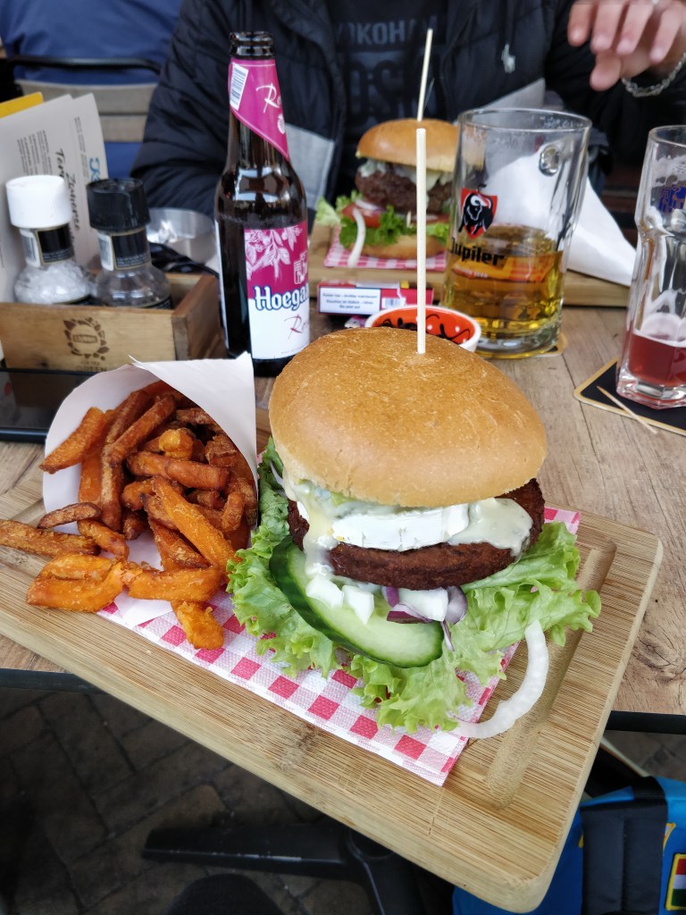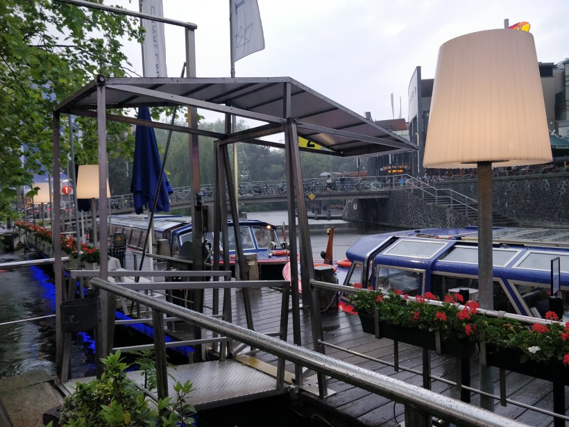 Ensuite, on est allés manger dans un resto de burgers et pancakes : le Bredero’s Cafe. J’ai pris un pancake au fromage et champignon (qui ressemblait à une crêpe) avec des oignons rings ! Et la vue était magnifique : on a mangé au bord du canal.