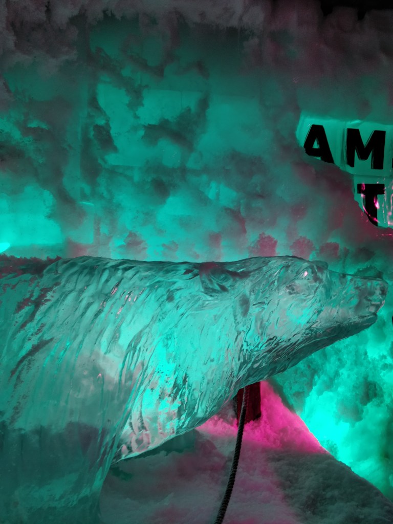 Là dedans, même nos verres étaient fait de glace, et il y avait des sculptures partout !