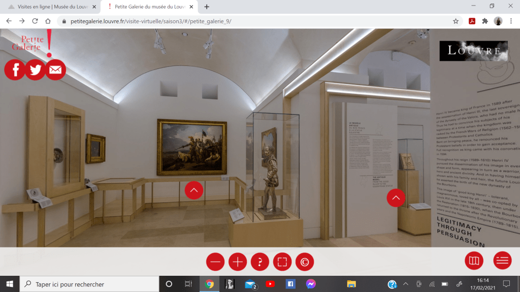 - On n’a évidemment pas accès à l’intégralité des œuvres et des expositions du musée du Louvre, même si on a le choix dans les expositions disponibles sur leur site.