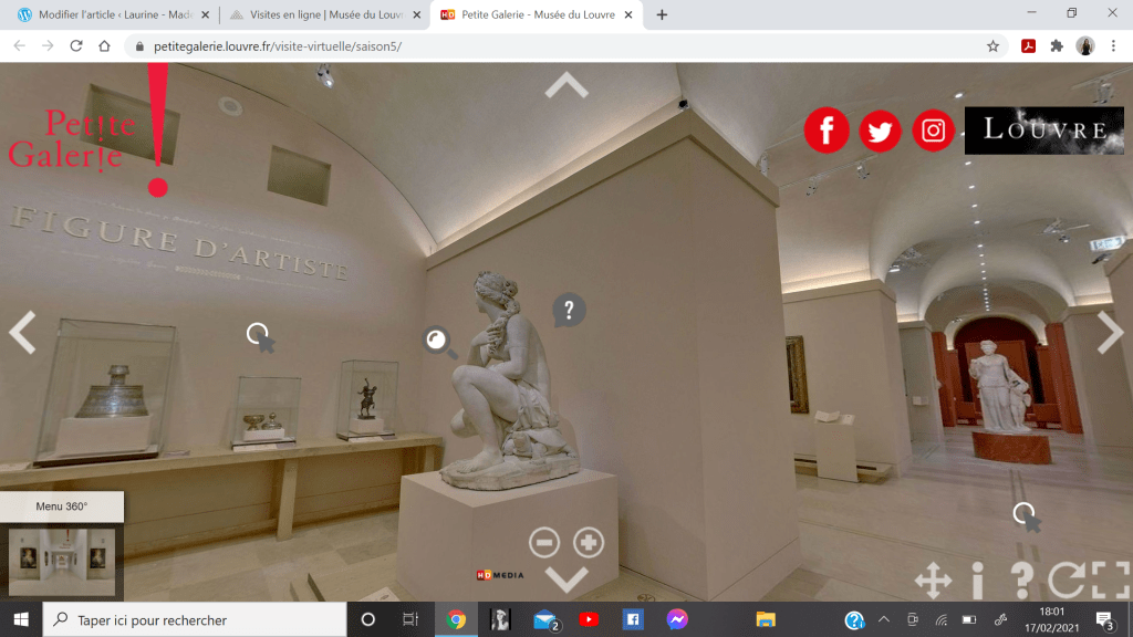 Evidemment, une visite en ligne ne remplace pas une vraie visite, en mon sens. On n’est pas dans le musée du Louvre, on n’a pas vu les bâtiments à l’extérieur avant d’entrée, on n’a pas pu observer l’architecture et la beauté des lieux qui attire tellement de personne à travers le monde entier. On manque une réelle expérience. Mais de l’autre côté, c’est une manière de rendre la culture accessible à tous, gratuitement, depuis chez soi : la visite n’est pas payante, et le fait de pouvoir se déplacer à Paris pour y aller n’est pas donné à tout le monde. Avec un peu de connexion internet seulement, il est possible d’avoir accès au musée. Les visites virtuelles sont donc un bon moyen de donner accès à la culture à tous, avec de moins en moins de discriminations.