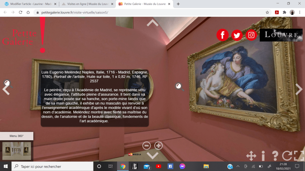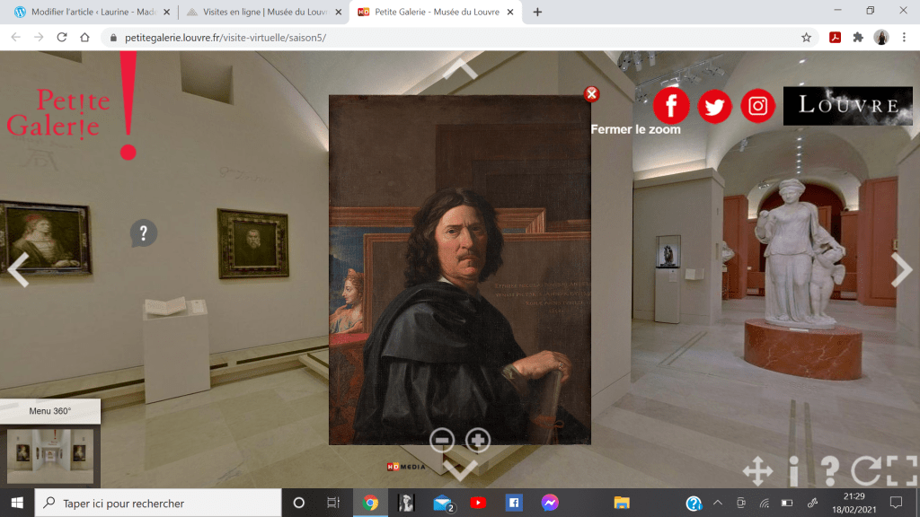 Aujourd’hui, je vous parle donc des visites en ligne que propose le musée, en m’appuyant sur deux des expos encore en ligne aujourd’hui : Figure d’artiste et Théâtre du pouvoir.