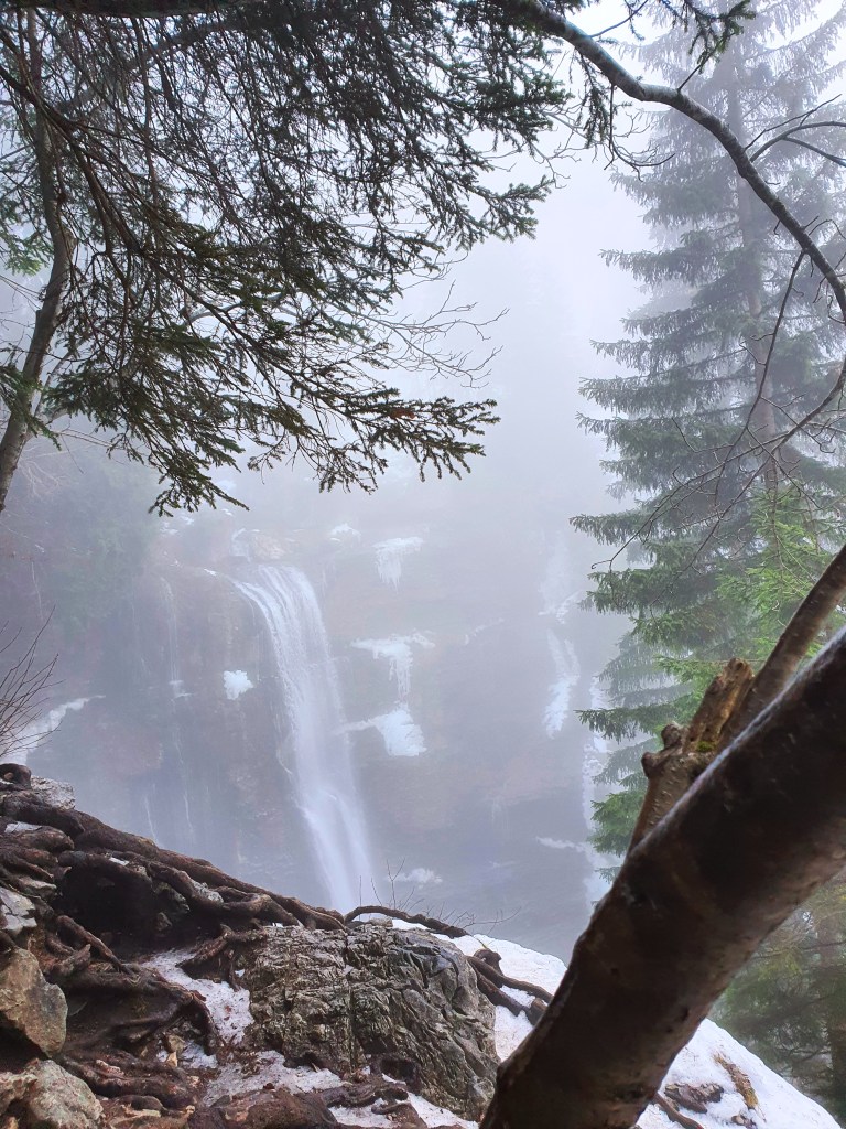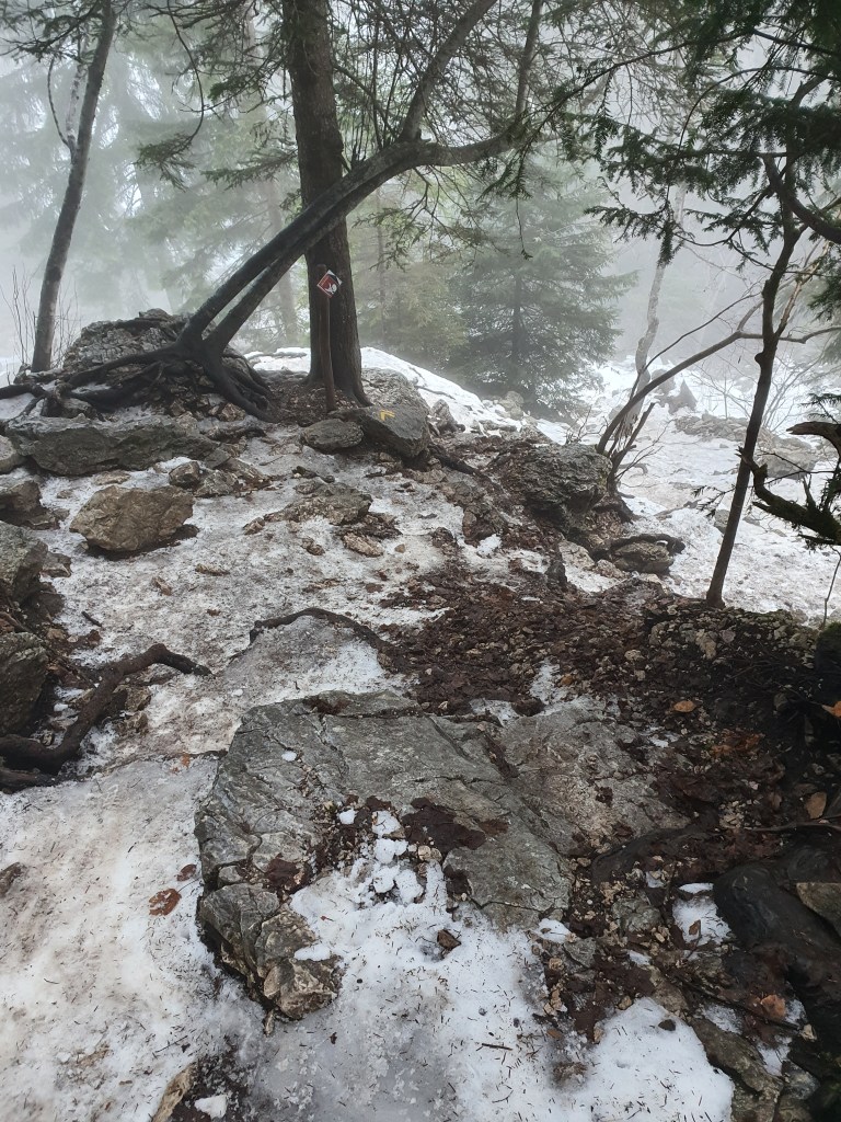 Evidemment, il y avait de la neige, et on avait tout prévu dans la voiture : les bottes, les parkas, les gants… Mais, le sentier étant plutôt fréquenté, a certains endroits, la neige s’est beaucoup tassé et était vraiment très très glissantes. Certains passages étaient donc très dangereux : en montée comme en descente, il fallait faire attention pour ne pas glisser et tomber dans le vide, malgré notre équipement. La rando est donc très sympa, et pas trop compliqué, mais assez dangereuse en hiver :
