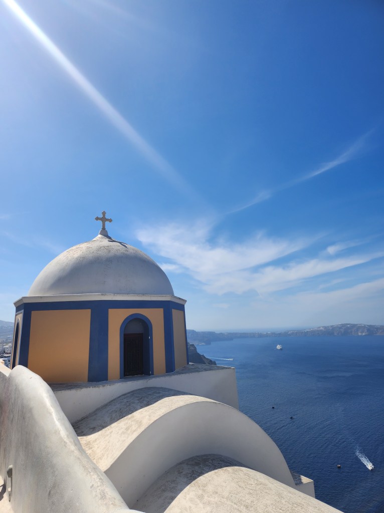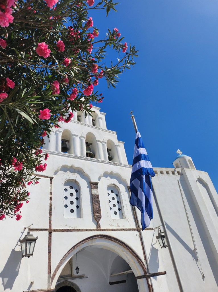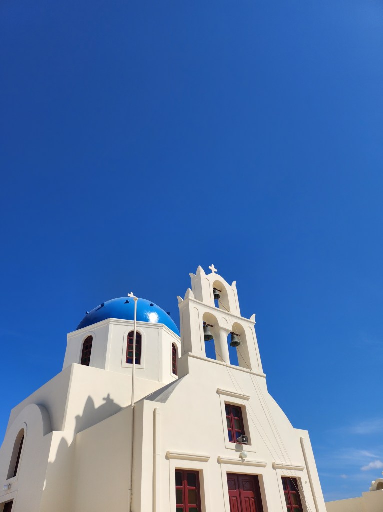 Nous sommes allés faire un petit tour dans ce village, loin de l’agitation touristique. Les ruelles étroites et pavées de Megalochori sont bordées de maisons blanches et bleues traditionnelles, de lieux pittoresques et d’églises aux dômes bleus emblématiques. Entre les vignobles qui entourent le village et les traditions préservées, Megalochori a été le théâtre d’une immersion authentique dans la vie insulaire, laissant une empreinte indélébile sur notre voyage à Santorin.