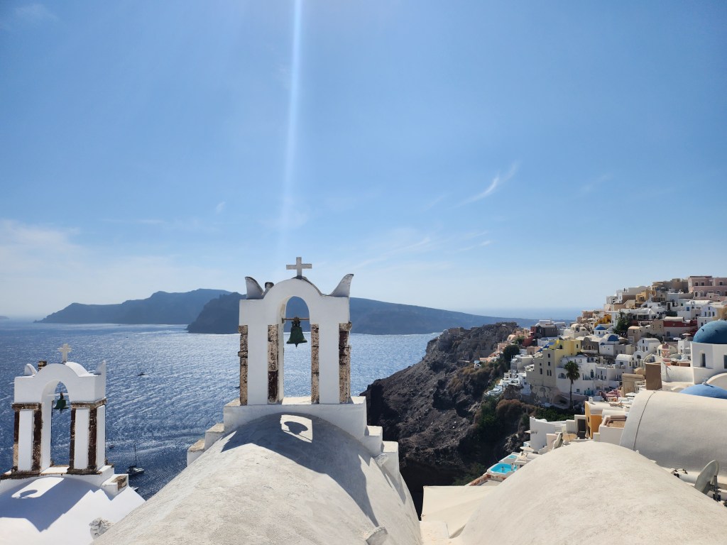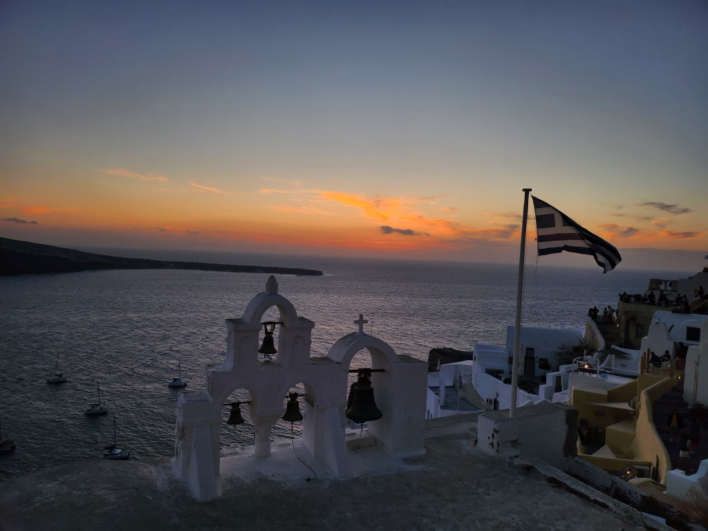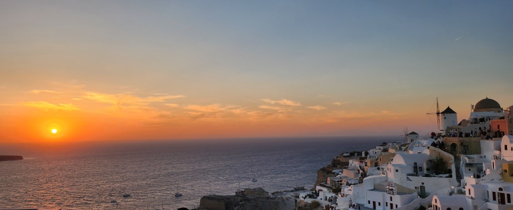 C’est vrai qu’entre les maisons blanches aux dômes bleus, la mer Egée couleur azur, le soleil qui descend en apportant des touches oranges… Le couché de soleil était vraiment à couper le souffle.