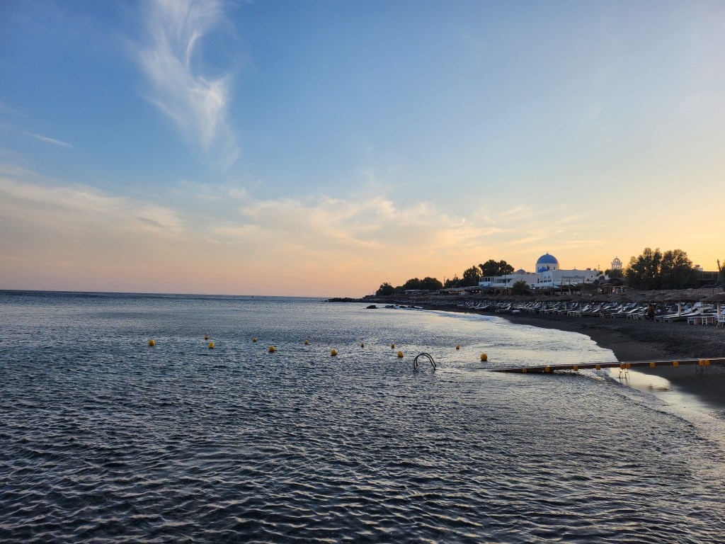 Perissa est dotée d’une promenade animée bordée de tavernes, de boutiques locales et de cafés conviviaux. Le soir, le doux murmure des vagues et les lumières scintillantes des tavernes en bord de mer créaient une ambiance magique. Perissa, avec son sable noir unique et son hospitalité généreuse, a été bien plus qu’une simple escale ; elle a été le point central de notre expérience inoubliable à Santorin.