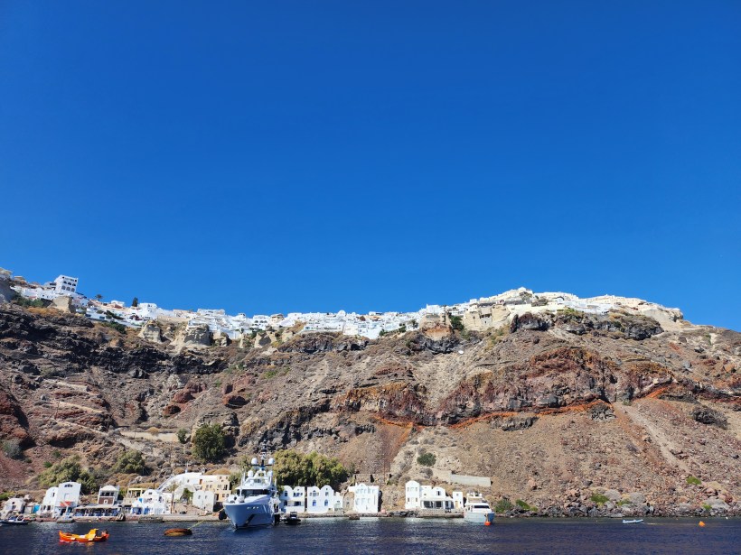 Dans la première partie, je vous expliquais l’histoire de l’archipel de Santorin : le volcan, la caldeira, les îles… Nous sommes donc partis en excursion pour voir cela de plus près !