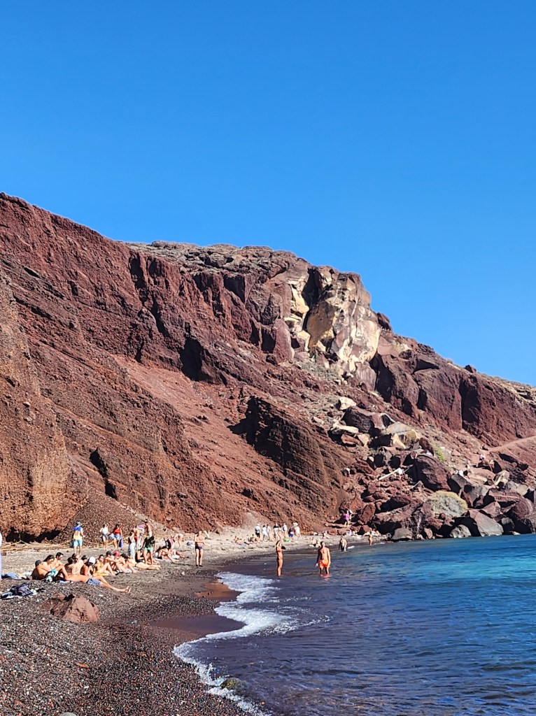 Proche des vestiges d’Akrotiri, la Red Beach est une magnifique plage rouge. Nous ne sommes pas restés car nous voulions voir la White Beach, dernière étape de notre journée, et nous comptions nous reposer là bas.
