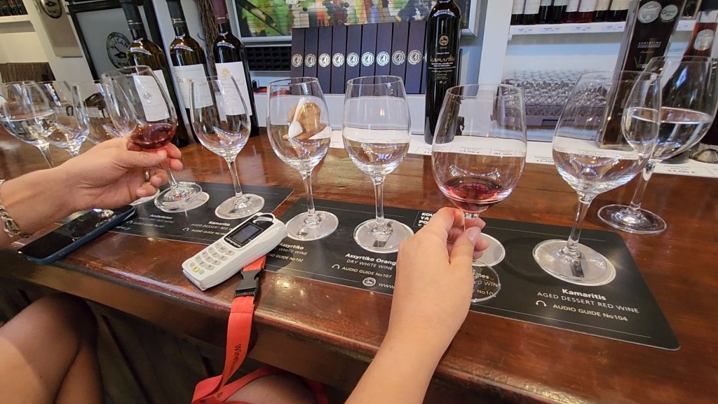 Le matin, nous nous sommes rendu au musée du vin Koutsogiannopoulos pour y apprendre la culture des raisons et le processus de fabrication du vin sur une île comme Santorin.