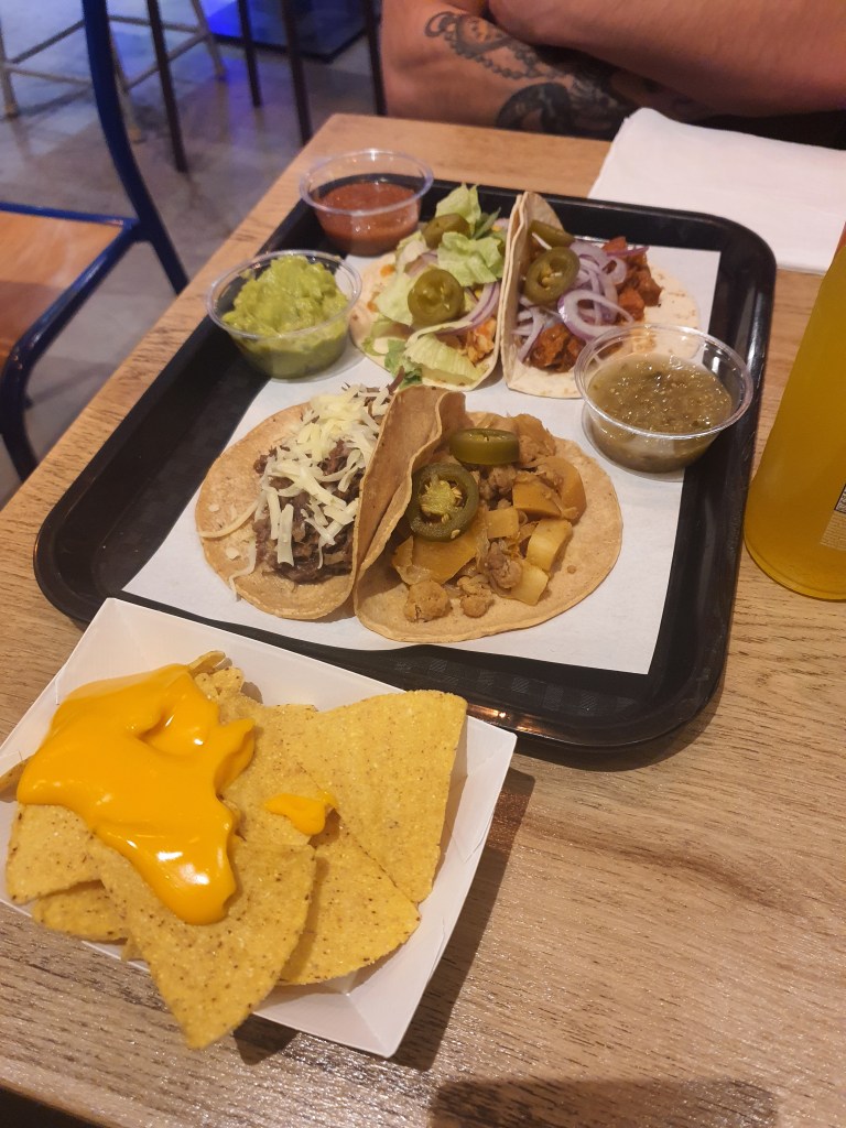 On s’est ensuite fait invité par Luis de chez Taco Taco, Street Food d’inspiration mexicaine. On a pu goûter des taco différents et des sauces différentes ! Le taco végétarien, aux légumes de saison, mais aussi le taco au poulet, bœuf et chorizo pour Jonathan.