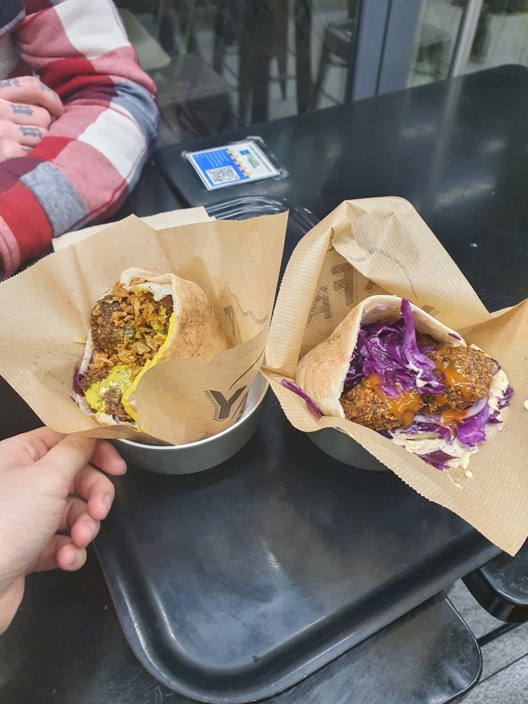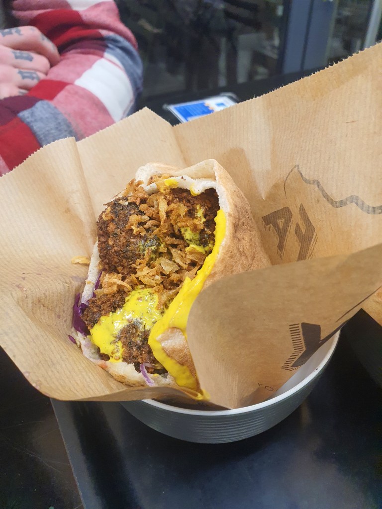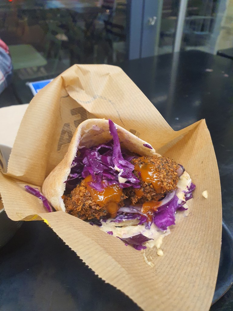 Dernière adresse de la journée (et oui, il faut que ça se termine à un moment !). On a réussi à manger encore : on a eu du mal à finir, mais c’était tellement bon ! On a pris des Pita Falafel : ils ont plusieurs recettes, toutes végétariennes ou végans (et que j’avais toutes envie de goûter). J’ai pris un Tou Chouss avec un thé glacé maison.